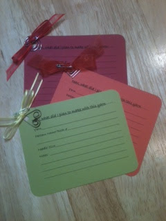 I also had another idea recently to make some cards for my fellow knitters. We always buy yarn for a specific project. Then when you see that yarn a year or so later (yes, a year or so later!) you wonder what project you were going to make with said yarn. So, I made some cards for them to use for that purpose! They are very cute if I must say so myself. I didn't buy anything - just used what I had in my stash of scrapping stuff. They say, "Now what did I plan to make with this yarn....." You can put the yarn name, pattern name/number, needle size, and any notes you want. Then you keep this card with your yarn and when you pull it out, you know exactly what you had planned to make! A brilliant idea and everyone loved them!